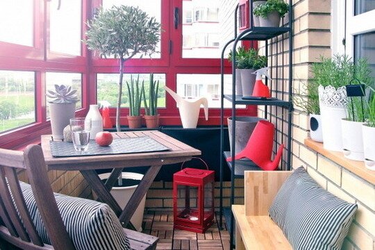 Дизайн балкона, фото которого есть в огромном количестве в Интернете и на нашем сайте, можно условно разделить на две категории: кухонный и комнатный. Первый предполагает, что застекленный участок квартиры прилегает к кухне. Отталкиваясь от столь нехитрых географических условий, можно предложить дизайн интерьера балкона в виде небольшой столовой, живописной оранжереи, яркой мини-веранды или хозяйственной комнаты для хранения продуктов и выполнения мелкой домашней работы.