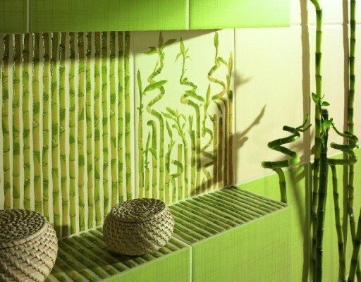 Немало зависит от формы и размера плитки. Использование прямоугольной плитки ля оформления также может «приподнять» потолок или «удлинить» стену, в зависимости от того, в каком направлении будет уложены ее длинные грани. Плитка малых размеров, а мозаика в особенности, позволяет компенсировать маленькую площадь ванной комнаты, придать помещению больше объема и свободы. Этому эффекту способствует и использование объемных орнаментов и рисунков, которые зрительно раздвигают стены и создают ощущение большего простора.