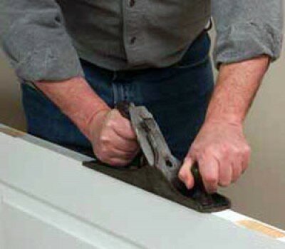 Свои особенности имеются при реставрации шпонированных дверей, связанные с отслоением шпона. Отслоение, чаще всего происходит из-за некачественного приклеивания, или нарушения влажностного и температурного режима в помещении. Отслоившийся участок шпона и поверхность основы под ним необходимо очистить от пыли и обезжирить. После этого на прилегающие стороны шпона и основы наносят тонкий слой клея и дают ему высохнуть.