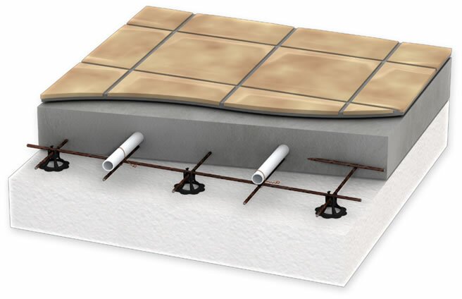Полученную систему проверяют на герметичность и при отсутствии проблем заливают бетонным раствором. В качестве дополнительного усиления бетонной стяжки для теплого водяного пола можно использовать армирующую сетку. Заливку осуществляют осторожно, чтобы не нарушить общую конструкцию и сохранить расстояние между соседними рядами труб.