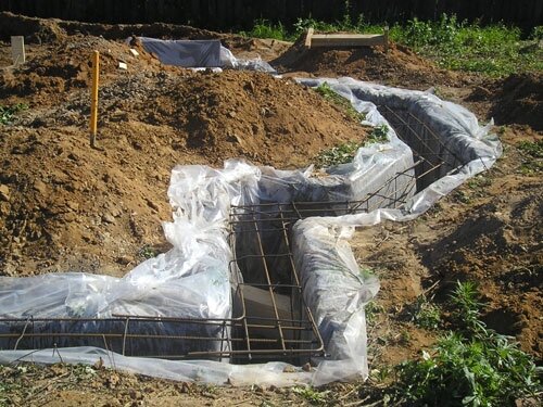 Армирование и заливка бутового ленточного фундамента