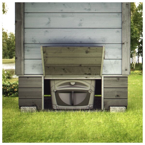 Собрать компостный туалет своими силами в целом несложно. Для этого монтируется обычная дощатая кабинка с дверцей и окошком для проникновения света, внутри которой крепится горизонтальная планка из фанеры по высоте емкости объемом в 50-100 литров. Предварительно в ней необходимо сделать отверстие под ведро. Под стульчаком с передней части желательно закрепить небольшой барьер из резины, который не даст нечистотам угодить мимо ведра. Сверху прикрутите сиденье и крышку.Чтобы спрятать большой контейнер и сделать эксплуатацию туалета более удобной, сделайте в кабинке двойной пол со ступеньками. Одну из внешних стен в месте установки ведра оснастите вентиляционным люком, чтобы неприятные запахи не концентрировались внутри биотуалета.